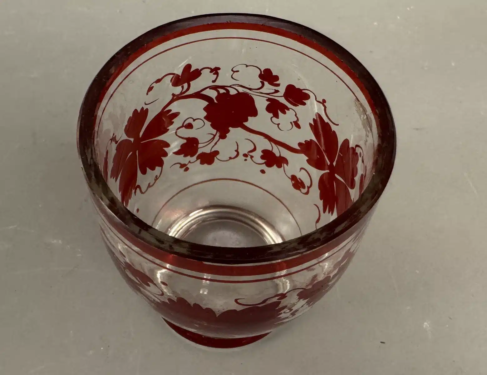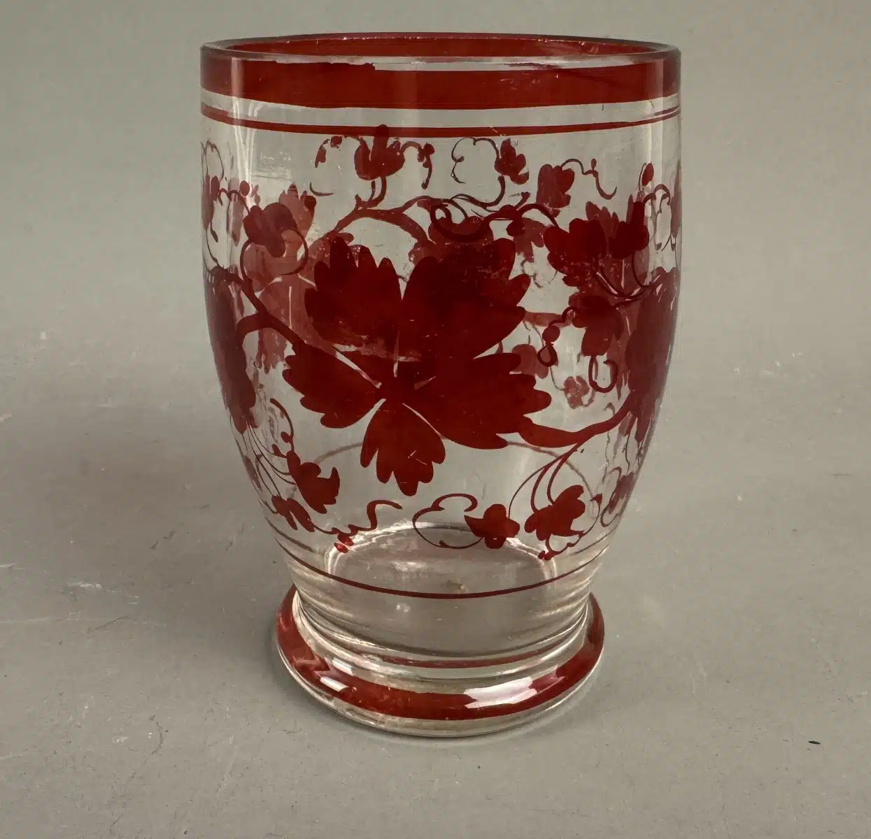 Switbert Lobisser – Aus persönlichem Besitz – Biedermeier, böhmischer rubinroter Kelch, Becher H 11 cm