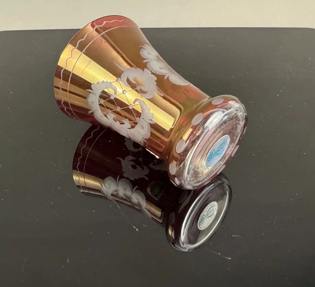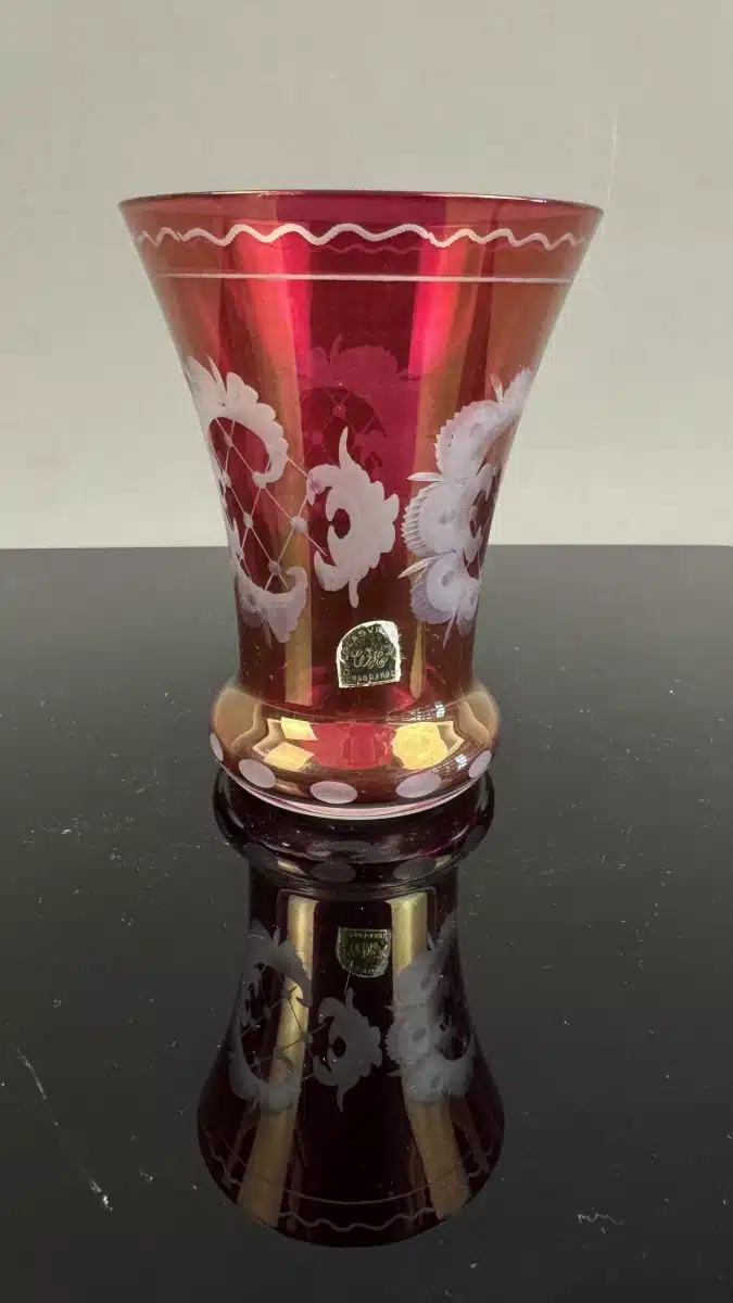 Switbert Lobisser – Aus persönlichem Besitz – böhmische Vase, rubinrotes Überfang Bleikristallglas H 12 cm