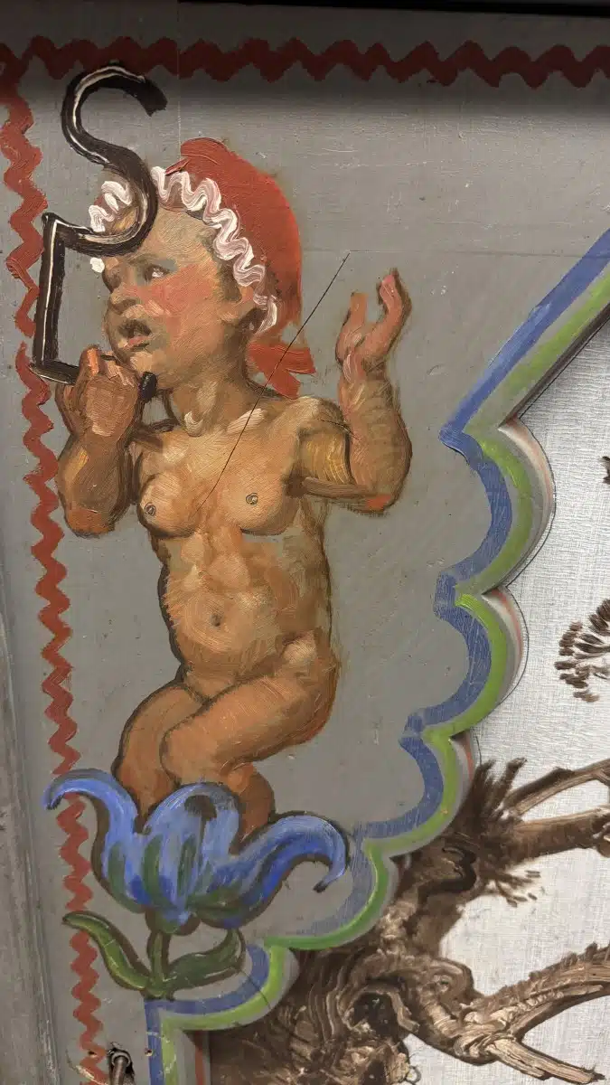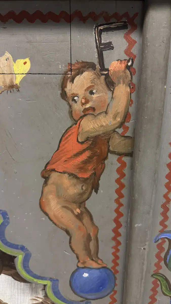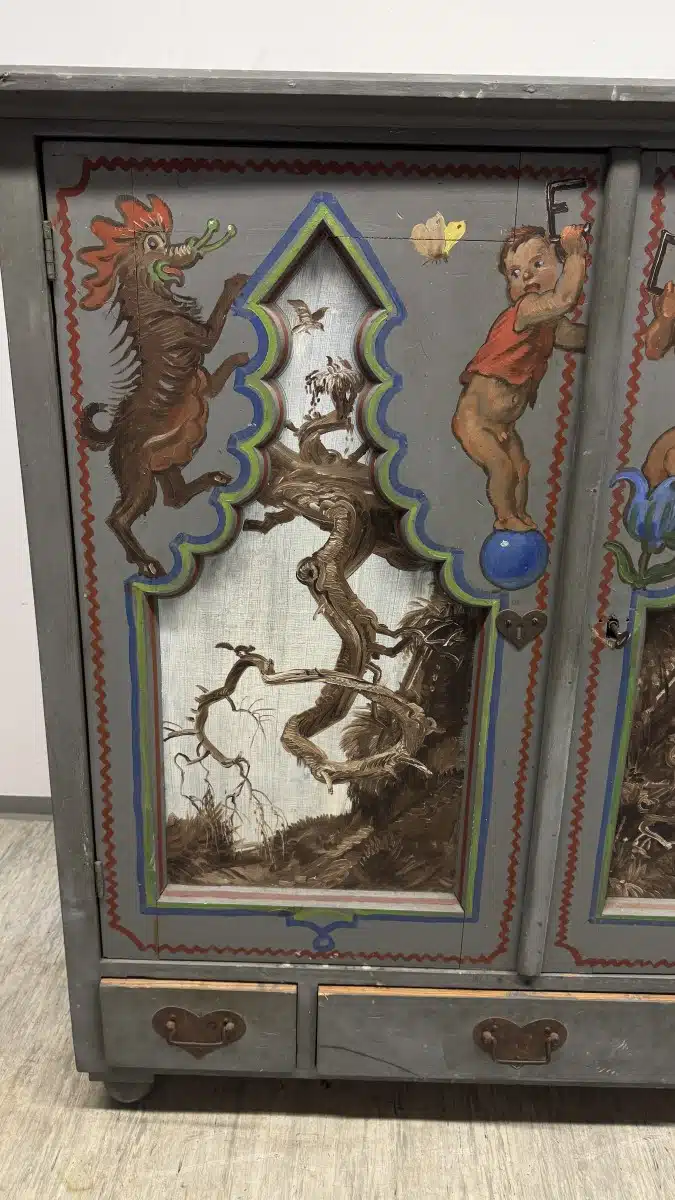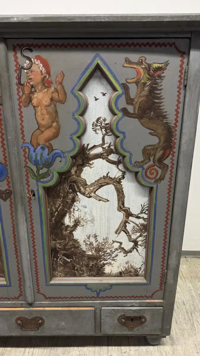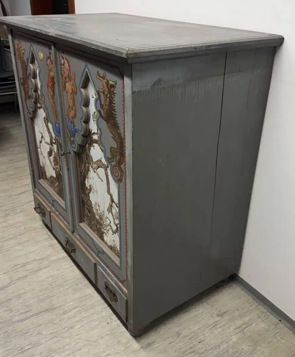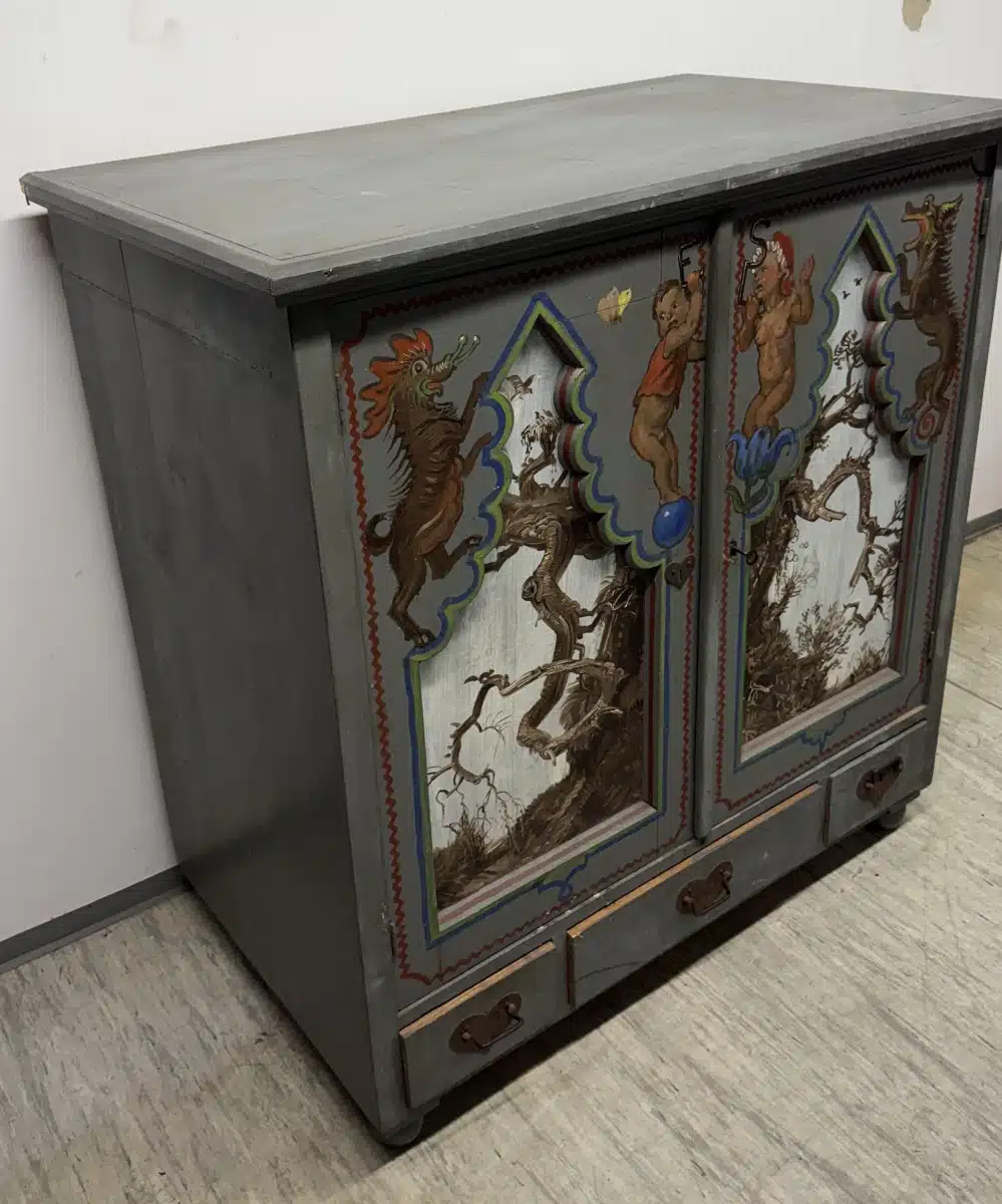 Switbert Lobisser – Aus persönlichem Besitz – von Lobisser bemalter Holzschrank, b 115 cm T 66 cm H 121 cm Abholungsort: Galerie Magnet Völkermarkt !!