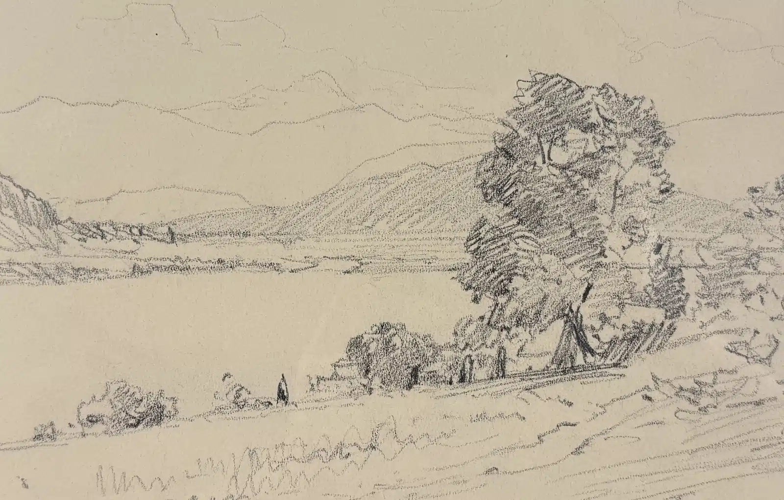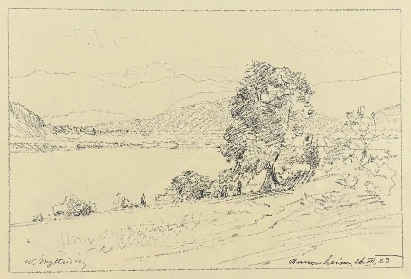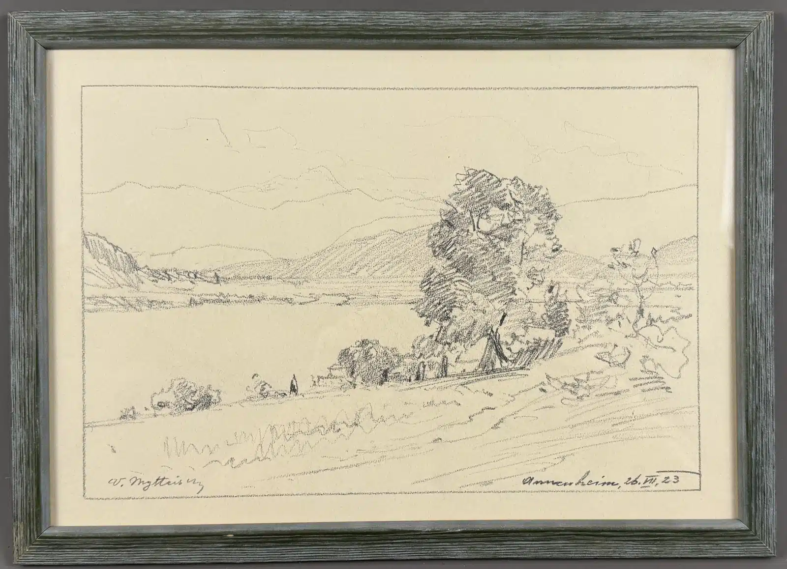 Viktor Mytteis (Schemnitz 1874-1936) Bleistiftzeichnung, 1923 Annenheim – Ossiachersee, verglast, gerahmt gesamt 38×28 cm