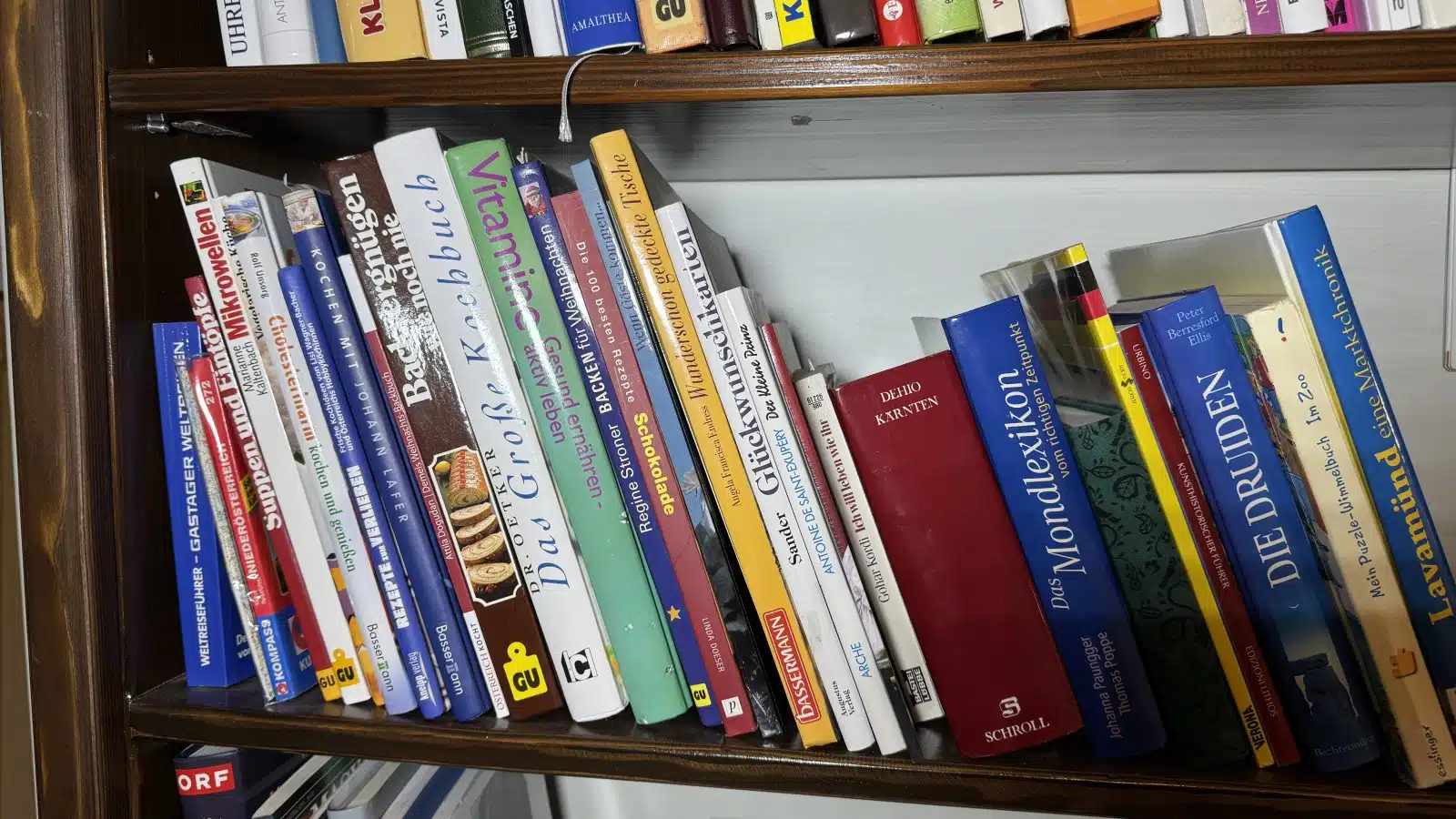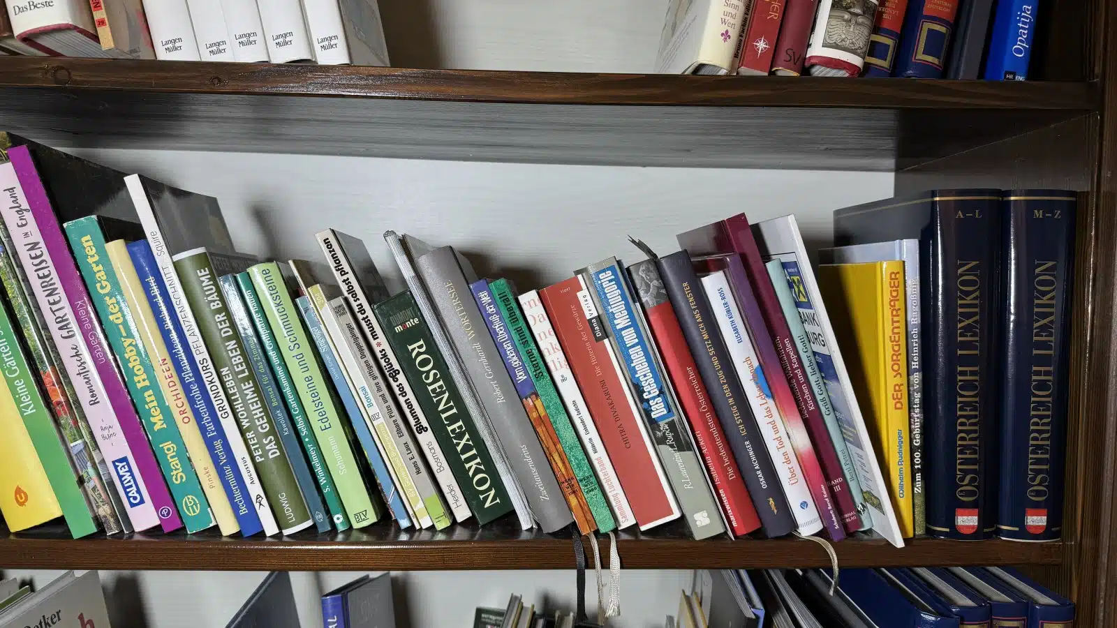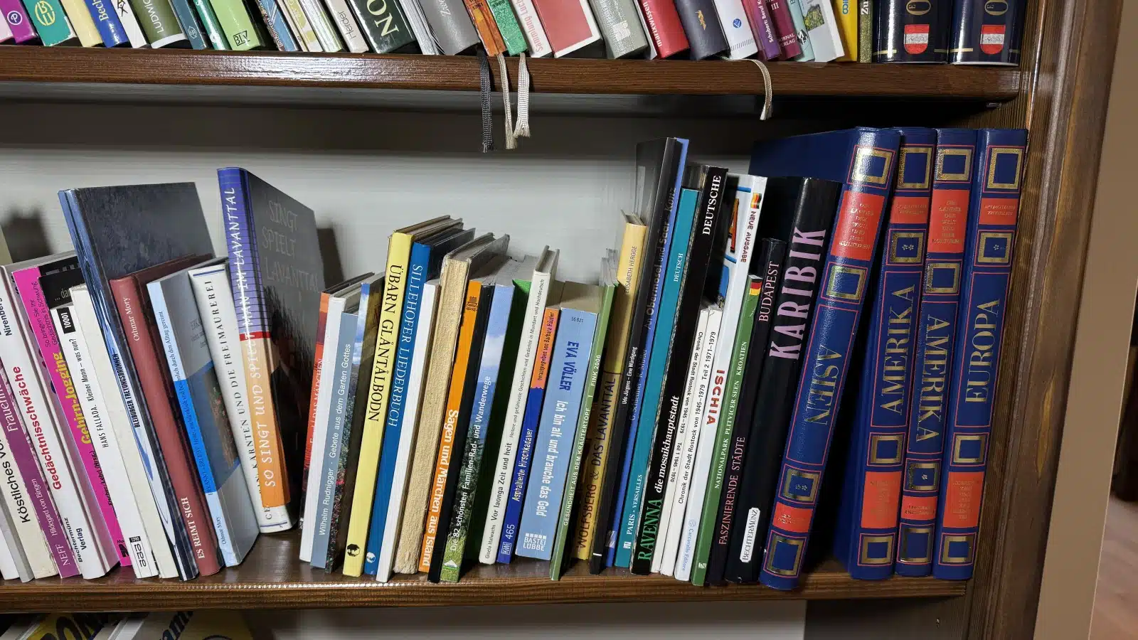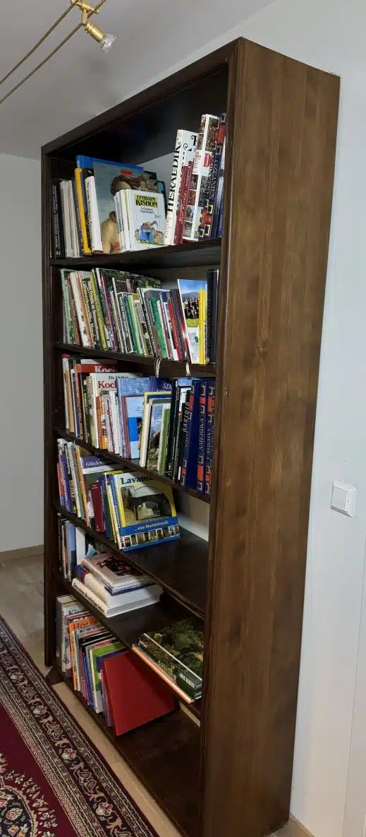Vollholz Bücherregal mit Inhalt 175×33 cm H 220 cm