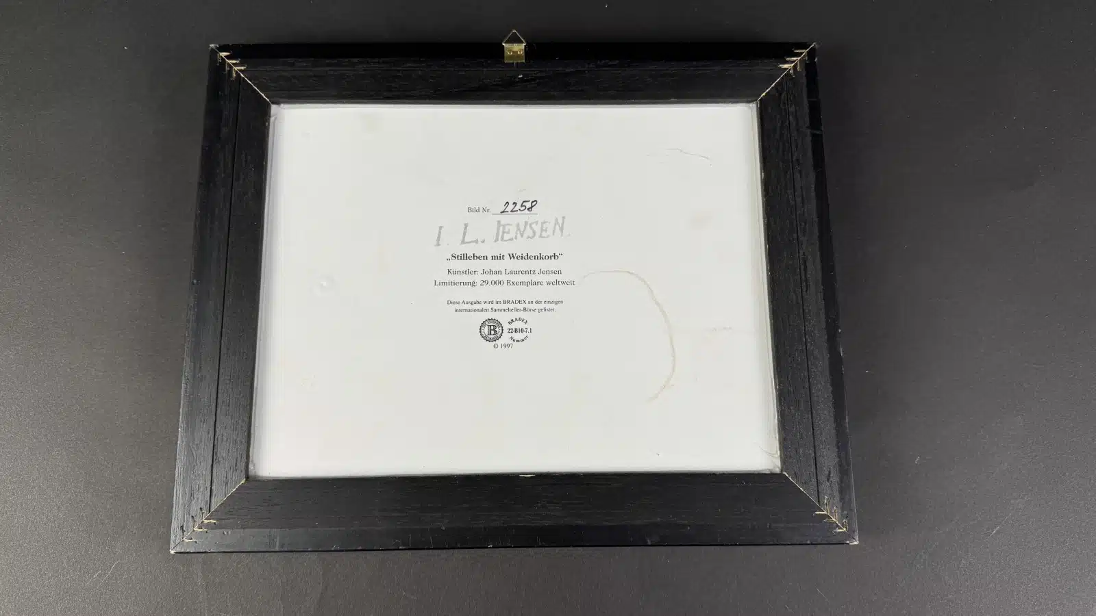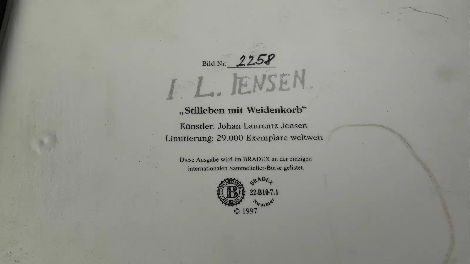 Wandbild Porzellan „Stilleben mit Weidenkorb“ von Johan Laurentz Jensen – Bradex 31 x 25 cm