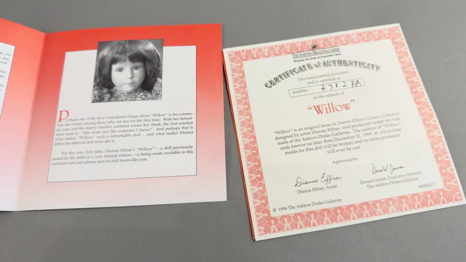Willow  Porzellanpuppe. im Originalen Karton mit Zertifikat