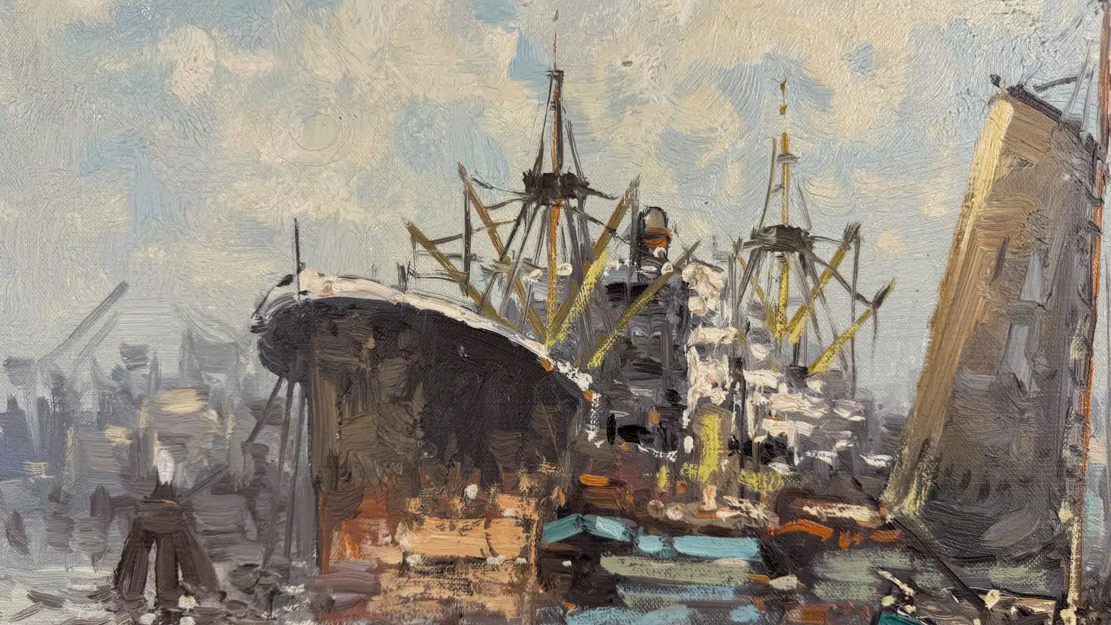 Wim van Norden (1917-2015) Hafen von Amsterdam, Öl auf Leinwand, signiert, ca. 69×49 cm, mit Rahmen ca. 82×62 cm.